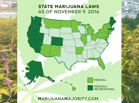 Map of State Marijuana Laws as of Nov. 9, 2016 – marijuanamajority.com