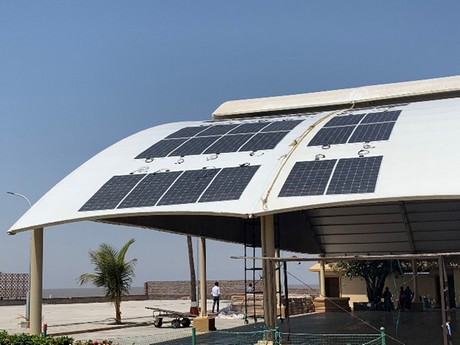 What Merlin Solar, Sprung Structures and ARK have achieved is to take their unique tensioned membrane greenhouse material and used it as a front sheet which means there is no concerning weight on the membrane regarding snow or wind loads and the membrane protects the solar panel from hail, snow and grime. Testing proved they can achieve 80% of the power output when using standard ETFE as a front sheet. They attribute it to the fact that Merlin does very well in scattered light conditions. For clarity, a panel normally producing 180W will now produce 144W with the Sprung / ARK greenhouse material as the front-sheet. A conventional current 2’ X 4’ solar panel produces 0.34 kW each while the thin solar panel produces 0.165 kW (about 50% less output).