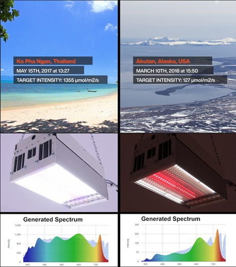 To advance this process, Valoya has introduced its LightDNA line in 2015 which enables simulation of sunlight from any part of the world by using just one kind of LED luminaire. LightDNA are state-of-the-art LED luminaires, connected to a simple online interface where researchers can click on any location on the world map to get a particular light quality in their chamber. The spectrum can be specified to any time of the year and any hour in the day. To enable this, LightDNA comes with 8 individual LED light channels made up of custom LED chips, the combination of which makes the replication of any spectrum possible.