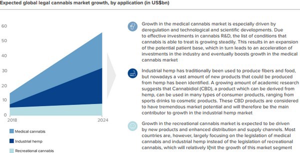 A graph from an Oaklins report on the global cannabis market, showing expected growth in various segments