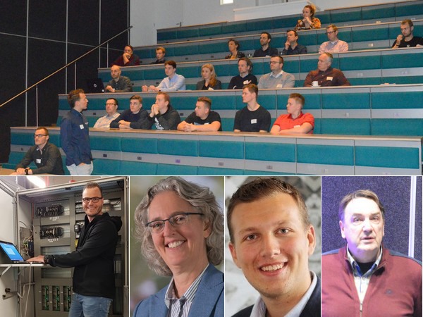 The room and the speakers: Danny den Hollander (Beekenkamp Group), Colinda de Beer (InnovationQuarter), Kevin Kleijwegt (Hoogendoorn Growth Systems) and Roel van Heijningen (Lentiz). Remco Duijverman of Hoogendoorn is also a member of the work group, but he was not present.