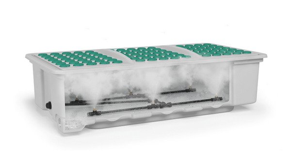 The system operates by cycling the central pump station intermittently to produce a fine 50-80 micron droplet mist. "This approach supercharges root growth with increased available oxygen while maintaining the proper hydration of the stem tissue. During operation, only a few ounces of water is maintained in each chamber, before cycling back through the recollection plumbing to the control module for redistribution."