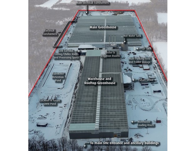 The Property is comprised of a +/-72.5 acre site currently improved with over 1,033,506 square feet of improvements, including a 578,022 square foot main greenhouse and an ancillary processing & warehouse building and rooftop greenhouse with 410,179 square feet of useable area. There is also excess land on the site which will allow for the construction of an additional 578,022 square foot greenhouse that can utilize the existing infrastructure, electrical plant, thermal plant and irrigation systems already on the site.