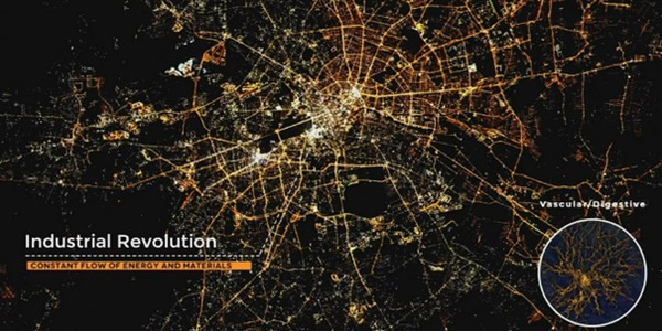 The futurist compared the stages of development in technology with those of cells (bottom right)