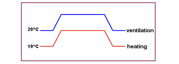 • Lower heating demand at night (energy savings), higher ventilation temperatures during the day (higher CO2 efficiency)