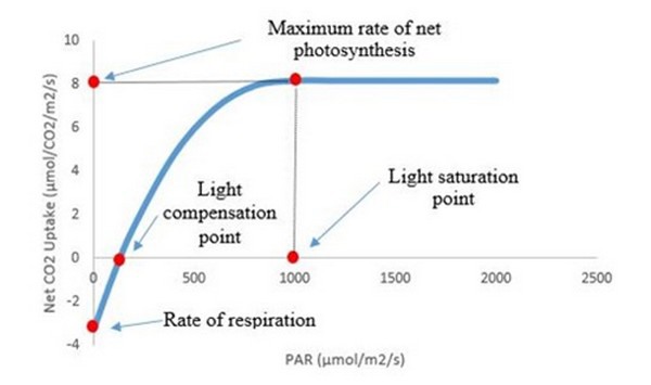 Figure 1. Graph of the light compensation point and the light saturation point