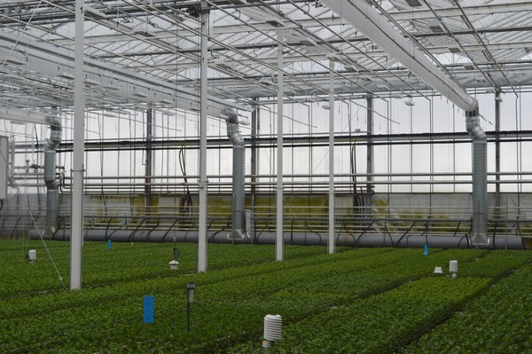 AVS system in chrysanthemum cultivation, seen here in a greenhouse at Delphy