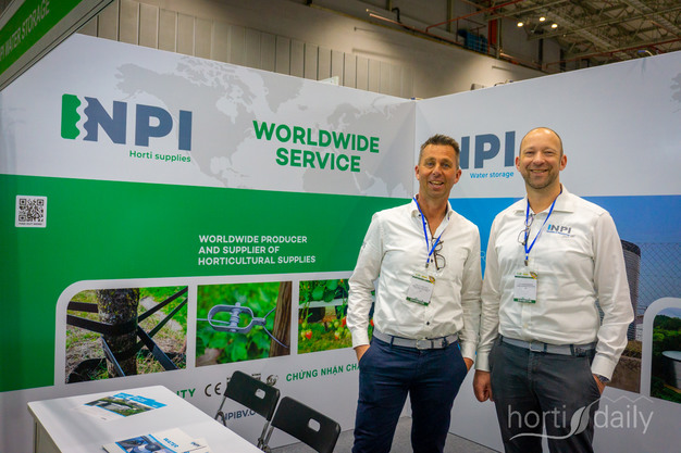 Erik van der Geest and Matthijs Kemperink with NPI, not only showing their water tanks but also their horticultural supplies.