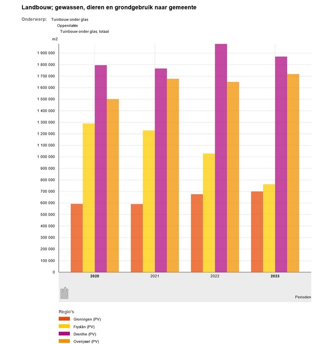 Can Dutch greenhouse horticulture still grow, or will the sector (necessarily) shrink in area? This is the subject of a public debate that's spurred by the statements of Frans Timmermans and Klaas Knot. Recent figures from Statistics Netherlands (CBS) provide insight into last year's greenhouse area in Dutch provinces.