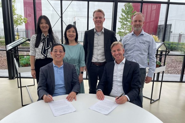 On the photo from left to right: Dr. R.Q. Huang (President Rui Xue Global) and Guido Janssen (CEO Lumiforte) (both sitting); Ms. Zi Ying Huang, Mrs. Xue Ping Huang (both Rui Xue Global), Niels de Groot (CFO Lumiforte) and Barry Zuidgeest (CCO Lumiforte).