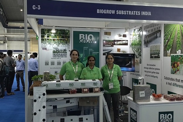 Biogrow is hosting training sessions for growers using soilless substrates, offering technical advice to clients, and supervising the cultivation of premium tomatoes and bell peppers for the Indian market.