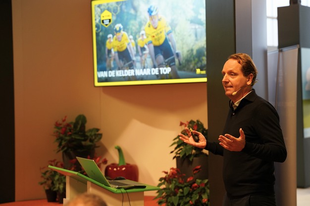 Robert Solleveld finally announced guest speaker Merijn Zeeman on behalf of Glastuinbouw Nederland following all the sector presentations. Until 1 October, he was sporting director of cycling team Visma Lease a Bike, and its predecessors. Since 1 December, he has been general manager at football club AZ. Merijn talked about how the cycling team climbed from the bottom to the top.