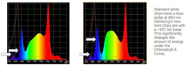 Hunter cites trials with Samsung's mint spectrum chips, which lean blue, as producing consistently compact flowers with improved yields per square foot of usable rosin-grade material. Brian, however, is more cautious: "In my opinion, trichome density is genetic. You're not going to make a flower put out more trichomes per area with light. What you can do is influence morphology, optimize how flowers stack, how dense they are, and let existing trichomes express their full potential.." In practice, both points converge: spectrum won't override genetics, but it can push morphology in ways that favor trichome harvestability.