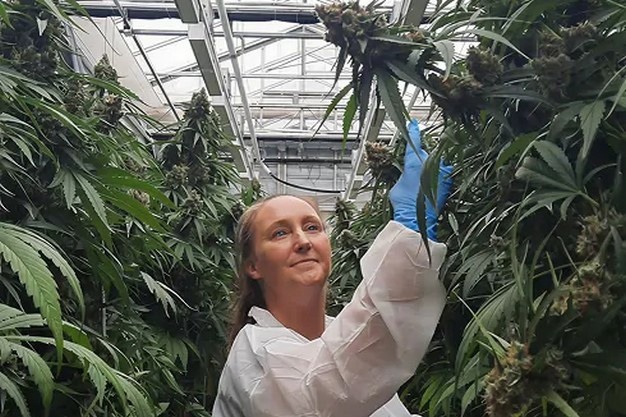© BiobestFigure 1: Juliette Pijnakker examining the presence of botrytis in cannabis.