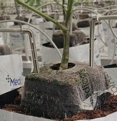 "Medicoir is a buffered low EC blend of ultra particles – small husk chips – and pith. It's a blend that's mixed on a mixing line, which ensures that each batch is consistent and uniform. This is important to growers that need to apply repeated actions to get stable results from one crop to the next. The ultra particles have great structure and high air-filled porosity, so cultivation in Medicoir presents the grower with a substrate that has excellent drainage and suits growers who want to crop steer with precision irrigations and uniform dry backs". Additionally, he says, "Each Medicoir OTC (Open Top Container) - often referred to as a popup bag - is individually numbered for full track and traceability. Every delivery has a complete COA, with microbial and heavy metal analysis - this is vital to meet exacting international standards."