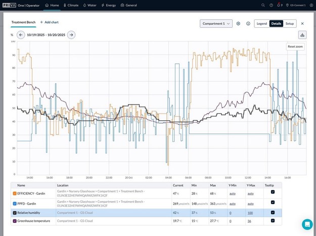 Through the integration of Gardin's real-time photosynthesis insights within the Priva One operating system, growers can now monitor how plants are responding to their environment in real time. This collaboration brings plant feedback and climate data together, eliminating the need to switch between multiple platforms and helping growers refine their cultivation strategies with precision.