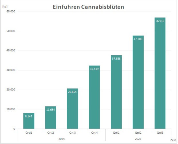 In their breakdown, imports of dry flowers for medical and scientific purposes amount to almost fifty seven tons, 56,915 kilos to be precise. The quarterly increase is significant, and the graph shows a clear upward trend.