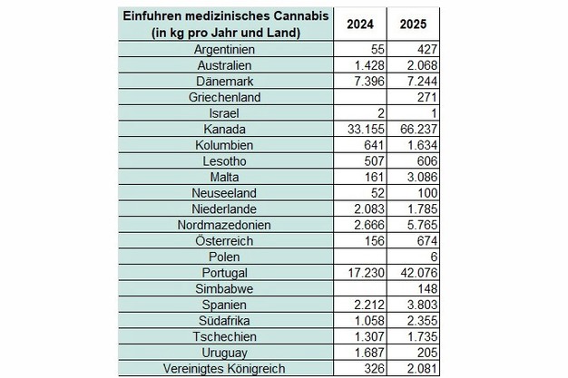 Interesting numbers also appear in the list of top importers. To the surprise of no one, Canada stands at the top of the podium. Next to the North American country there is Portugal, the second largest importer of medical cannabis in Germany. Both countries registered a large year over year increase. At the same time, while Canada almost doubled its imports, from roughly 33 tons to 66 tons, Portugal went from 17 tons in 2024 to more than 42 tons in 2025.