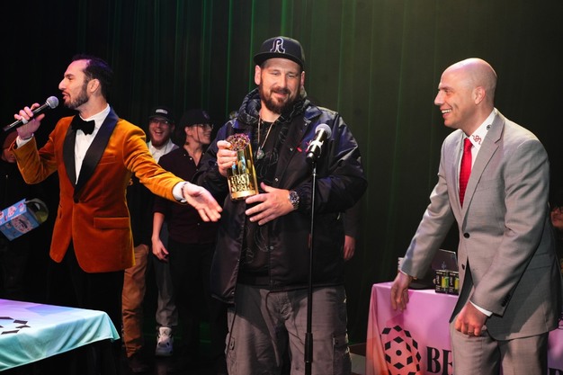 © Redemption BotanicalsBest In Grass Awards L to R: Mark Kaz, presenter. Dread, RB Director of Cultivation. Marshall Lionti, RB CEO.