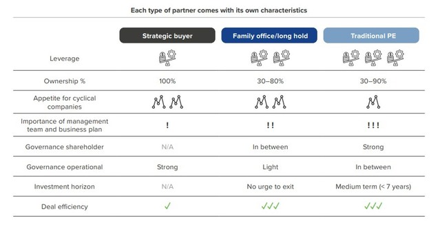 PE firms exist in many varieties and mainly differ from each other in terms of investment strategy and horizon. Some prefer to invest in companies with strong growth opportunities, while others target steady cash flows or financially distressed companies in need of a turnaround. Some PE firms take a more hands-on approach, getting closely involved in the day-to-day operations of their portfolio companies. Others are more hands-off, giving management teams the freedom to run the business independently. The vast majority take the latter approach.