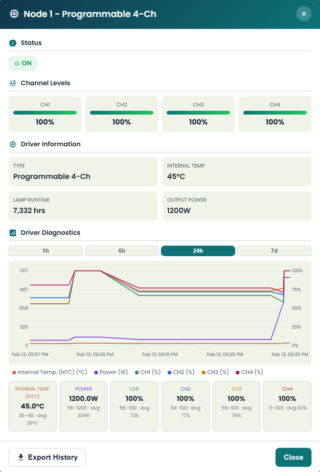 Netvion's open and flexible architecture enabled integration with this custom-built platform, allowing the grower to implement their own advanced control strategies while still benefiting from wireless, high-resolution lighting control.