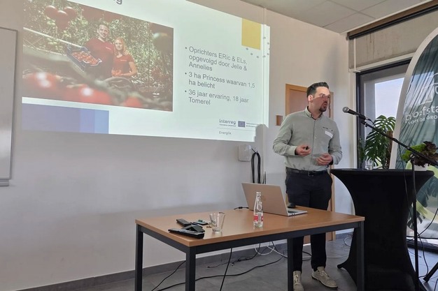 © EnerglikJelle De Ryck of Tomerel shared his experiences as a demo partner in the Energlik project on October 2, 2025, during a visit to the Proefstation voor de Groenteteelt in Sint-Katelijne-Waver.