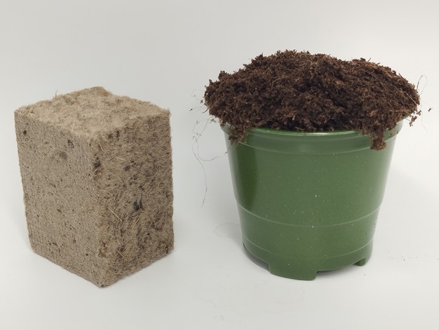 The resulting solid structure does not crumble, providing a clean working environment and eliminating the need for plastic pots or trays in many applications. Furthermore, because the materials are fully biodegradable, the used substrate can be composted or converted into energy through biogasification instead of generating costly waste.