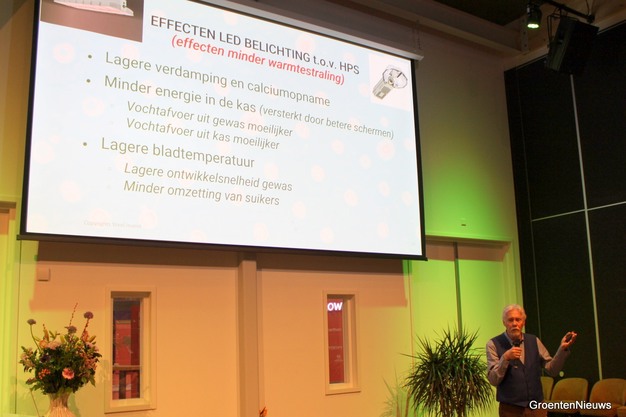 Cultivation advisor Erik Stappers, who previously worked for an LED supplier and now consults at Horti-Consult International, shared practical experiences from LED-based cultivation, with a focus on observations from the most recent winter growing season. The greatest challenge he identified is the conversion of sugars into fruit production, in other words, the efficient translocation of assimilates to the fruit.
