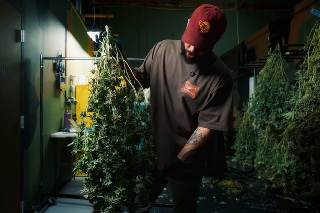 With dead leaves dying back into the bud, quality management shifted to the post-harvest side. The priority was removing as much dead leaf material as possible before bucking, to prevent it from crumbling into the product and stripping terpenes during the cure.