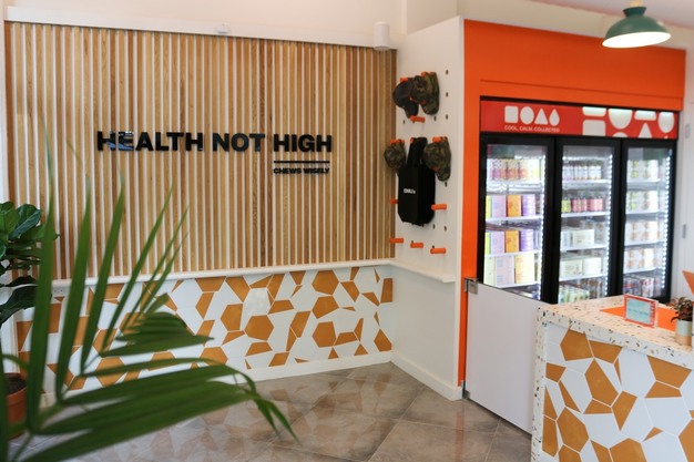 The store features a modern, welcoming design and a concierge-style service model, with trained staff guiding customers through a curated assortment of products. The retail experience mirrors the company's online marketplace, featuring leading national brands such as Cann, Wana, and Wyld, as well as local partners, including Atlanta-based Scofflaw Brewing.