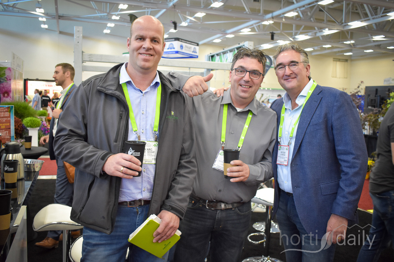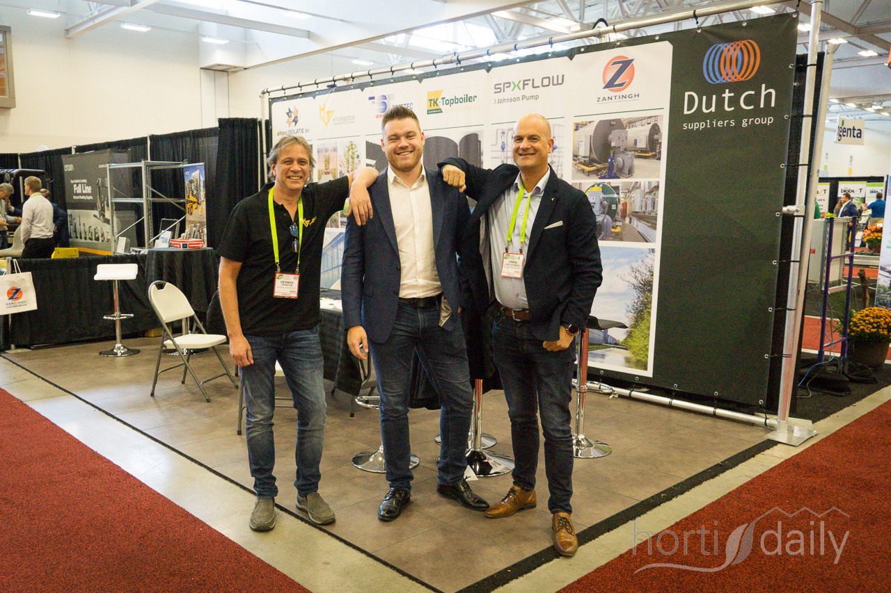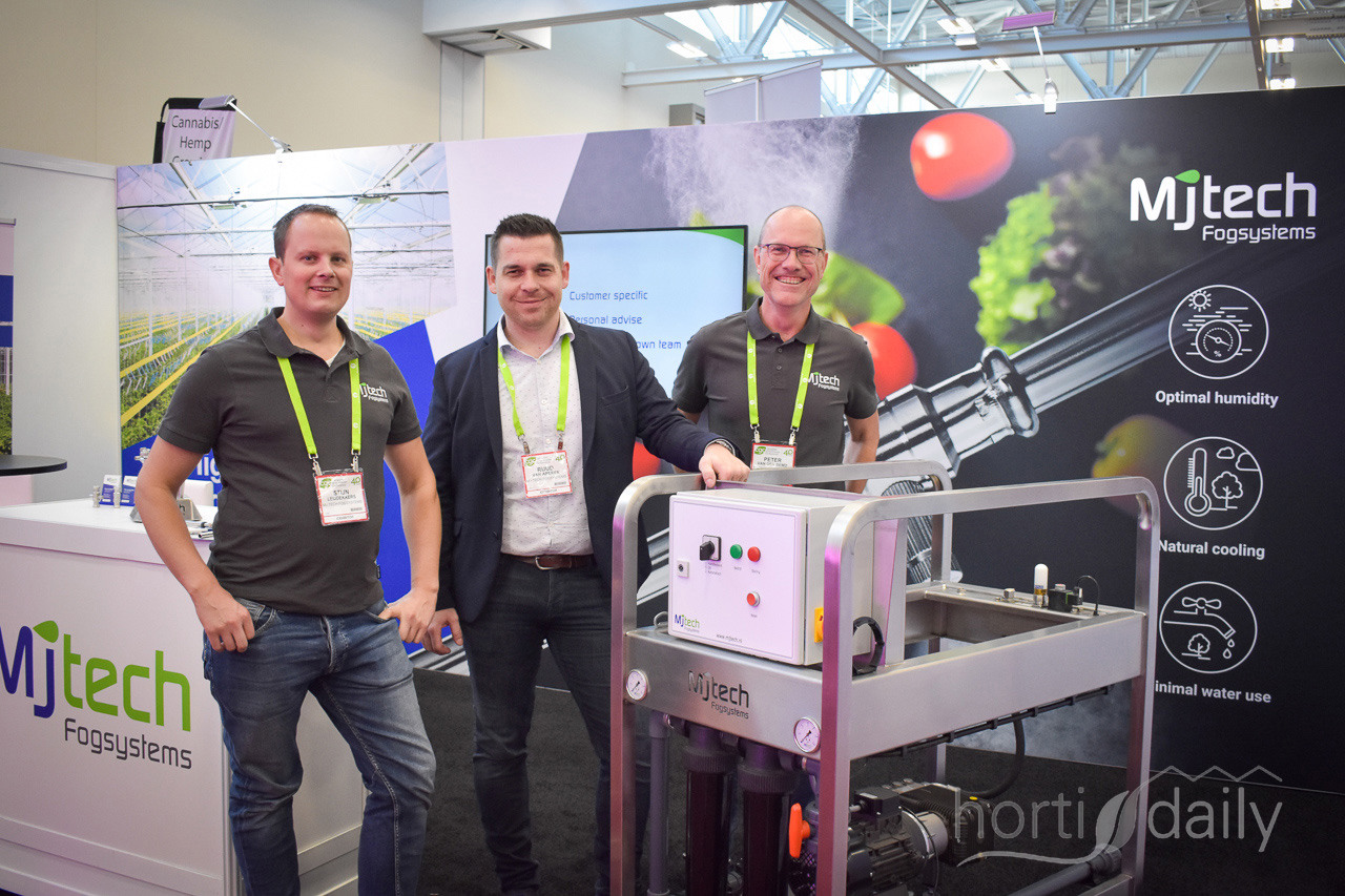 Stijn Leijdekkers, Ruud van Aperen & Peter van den Bemd with MJ Tech. Their high pressure fogging systems provide additional control over the climate, optimal humidity and a cooling system with minimal water use.