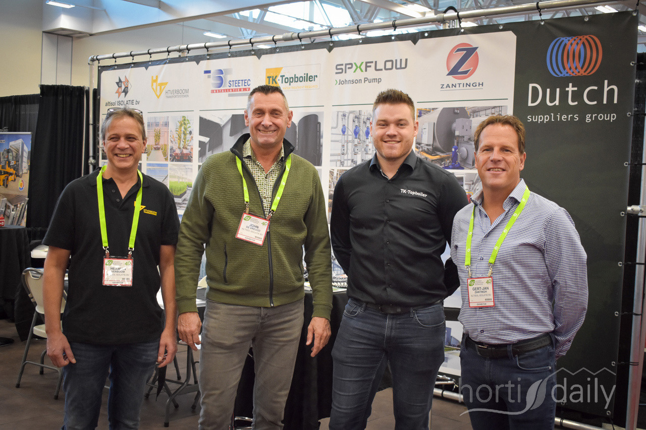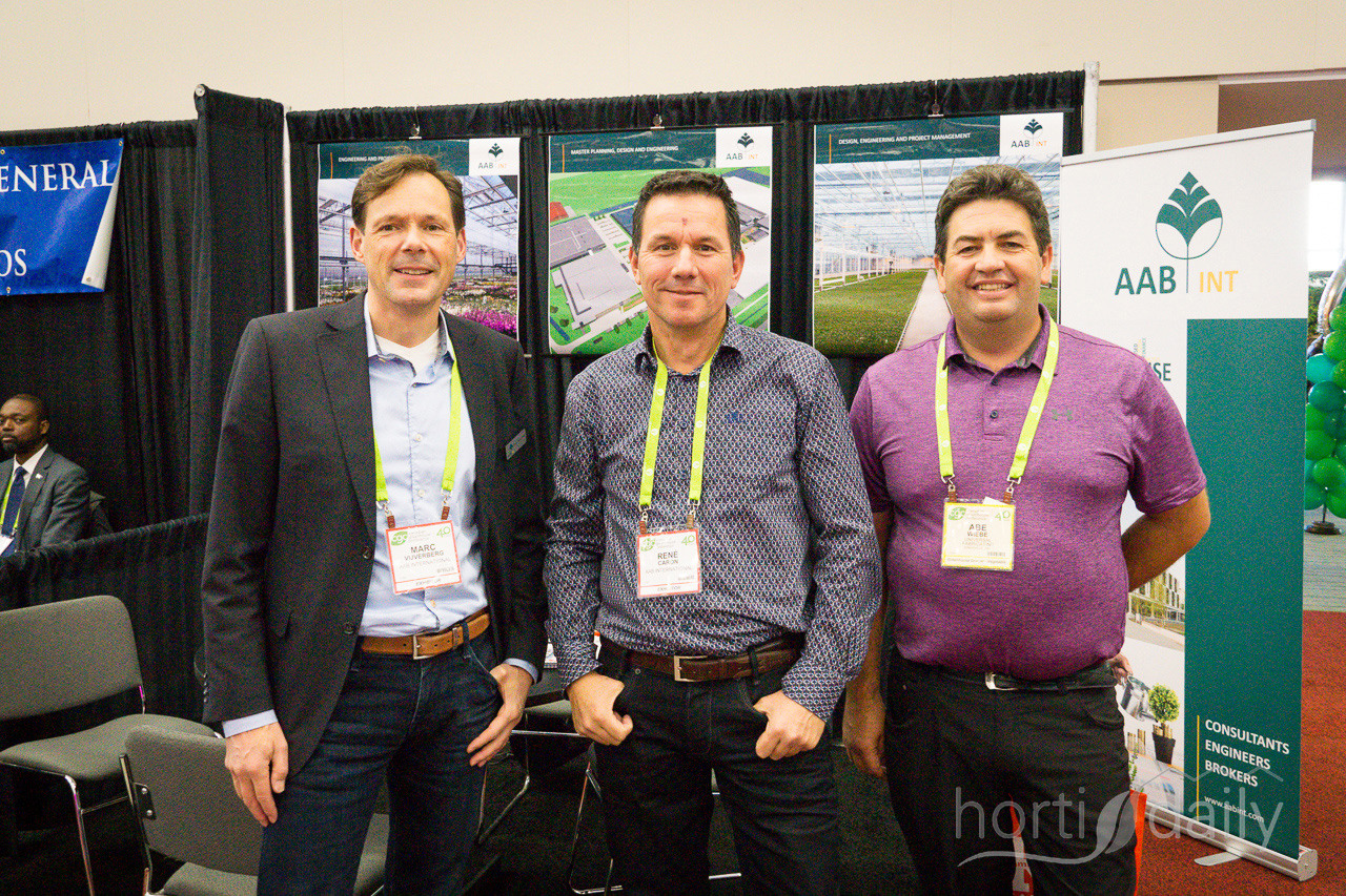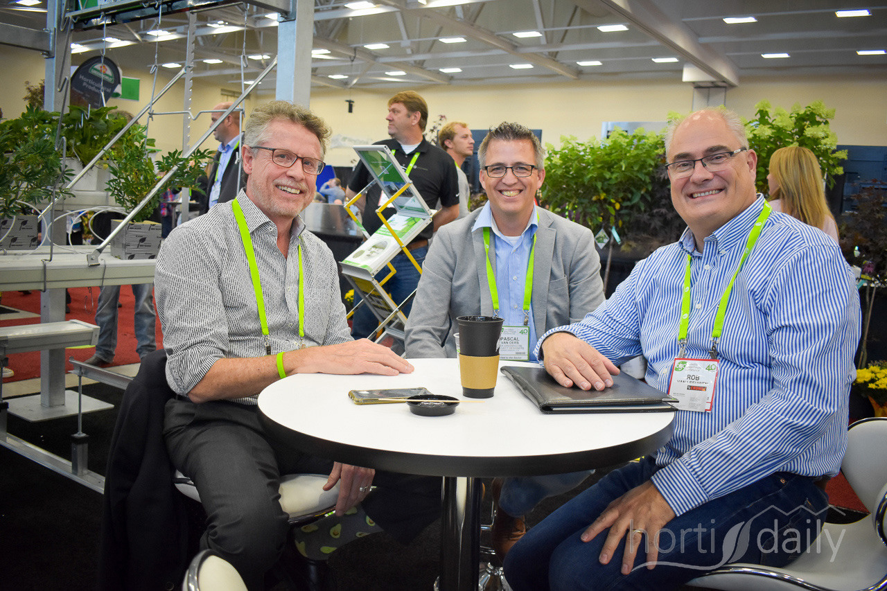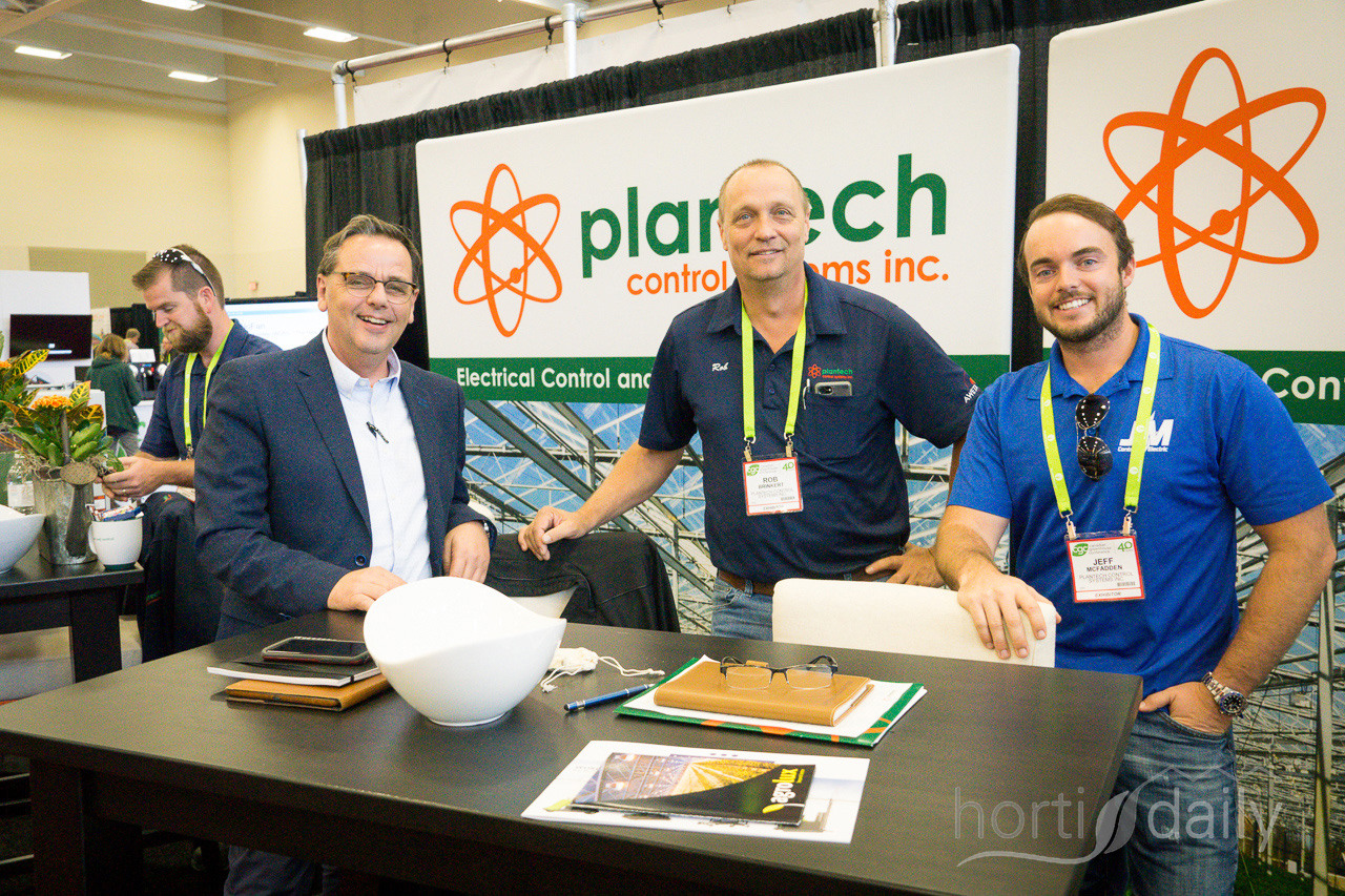 Stijn Leijdekkers, Ruud van Aperen & Peter van den Bemd with MJ Tech. Their high pressure fogging systems provide additional control over the climate, optimal humidity and a cooling system with minimal water use.