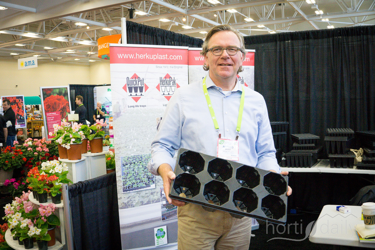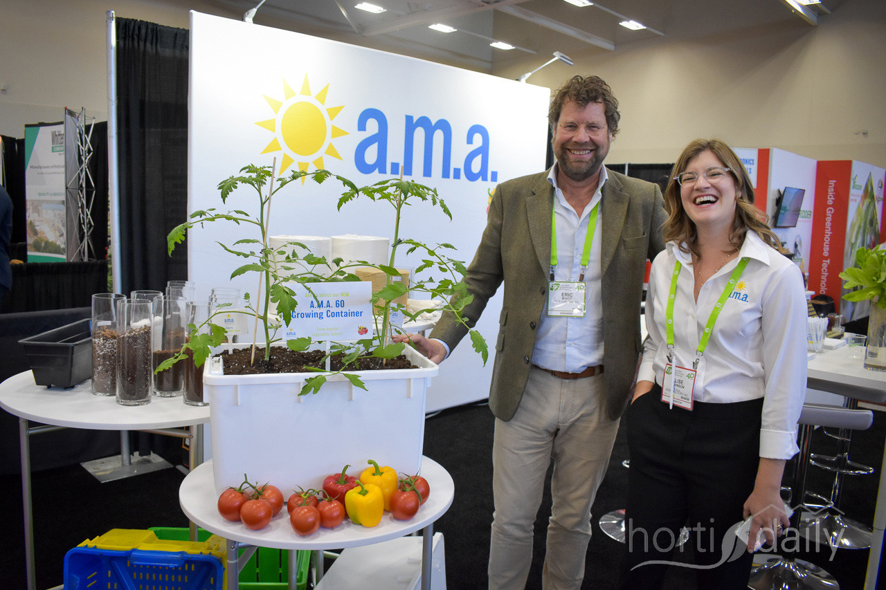 Even though tomatoes are not his specialty, Eric Boot can take a photo with Elise Johnson with AMA Horticulture, showing their 60 litre growing container suitable for organic growing. Read all about it here: https://www.hortidaily.com/article/9151594/new-growing-container-for-indoor-organic-vegetables/